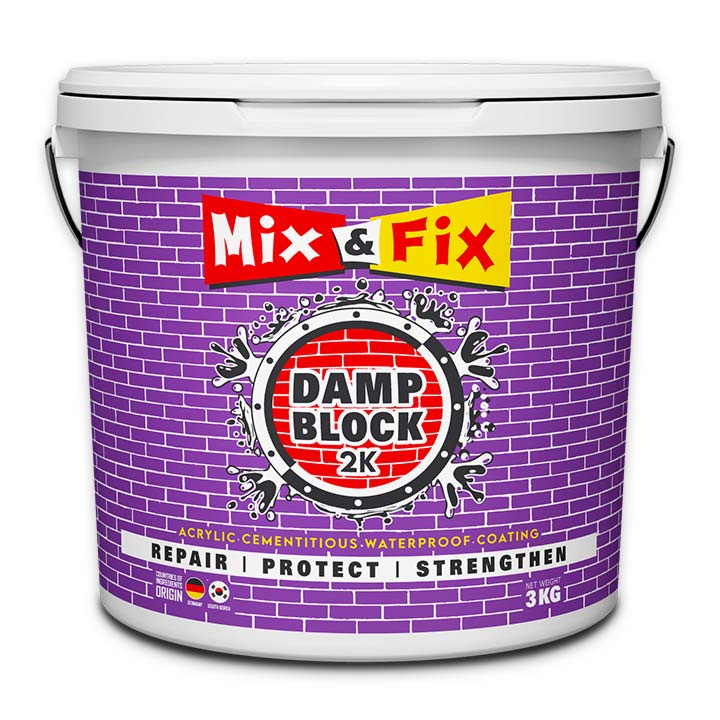 DampBlock 2K is a two component, elastomeric, acrylic polymer modified cementitious waterproofing protective coating system specially formulated for Concrete and Masonry Surface which is supplied in ready-mix kits (2 parts). The powder part is mixed with acrylic-modified emulsion and applied according to direction. It is applied on concrete or cementitious surface to prevent water infiltration.